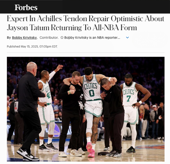 In the 2025 NBA playoffs, an Achilles injury brought superstar Jayson Tatum's season to an early end. Dr Stone shared his expertise in Achilles repair with Forbes to explain how advances in surgical care will impact Jay Tatum's potential recovery timetable.