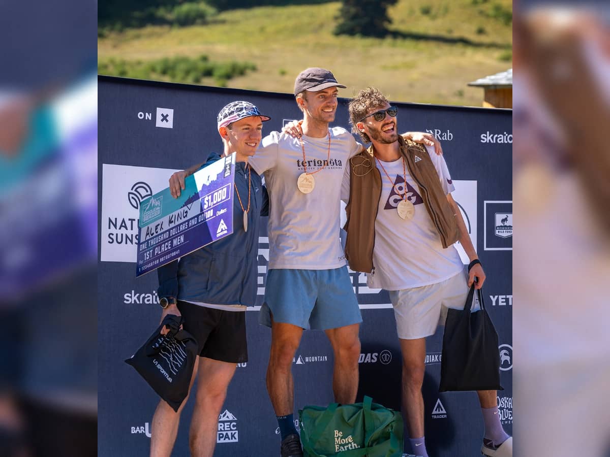 Pictured (middle): Percutaneous Achilles Repair patient Alex King on podium as winner of the mountain trail running race 2025 Cirque Series in Crystal, WA
